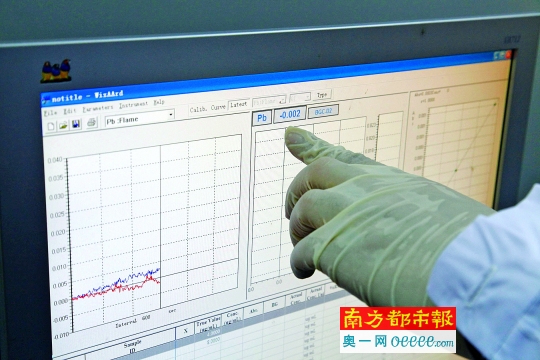 4 .程工正在使用原子吸收設(shè)備檢測水樣品。