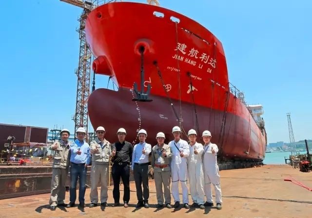 廈門船舶重工股份有限公司為廈門建發(fā)航運(yùn)有限公司批量建造的5390DWT雙相不銹鋼油化一體船中的首制船(建造代碼415A)在企業(yè)一號船臺順利下水。船東、CCS船檢、廈船相關(guān)領(lǐng)導(dǎo)、人員代表出席并觀摩了下水儀式。
